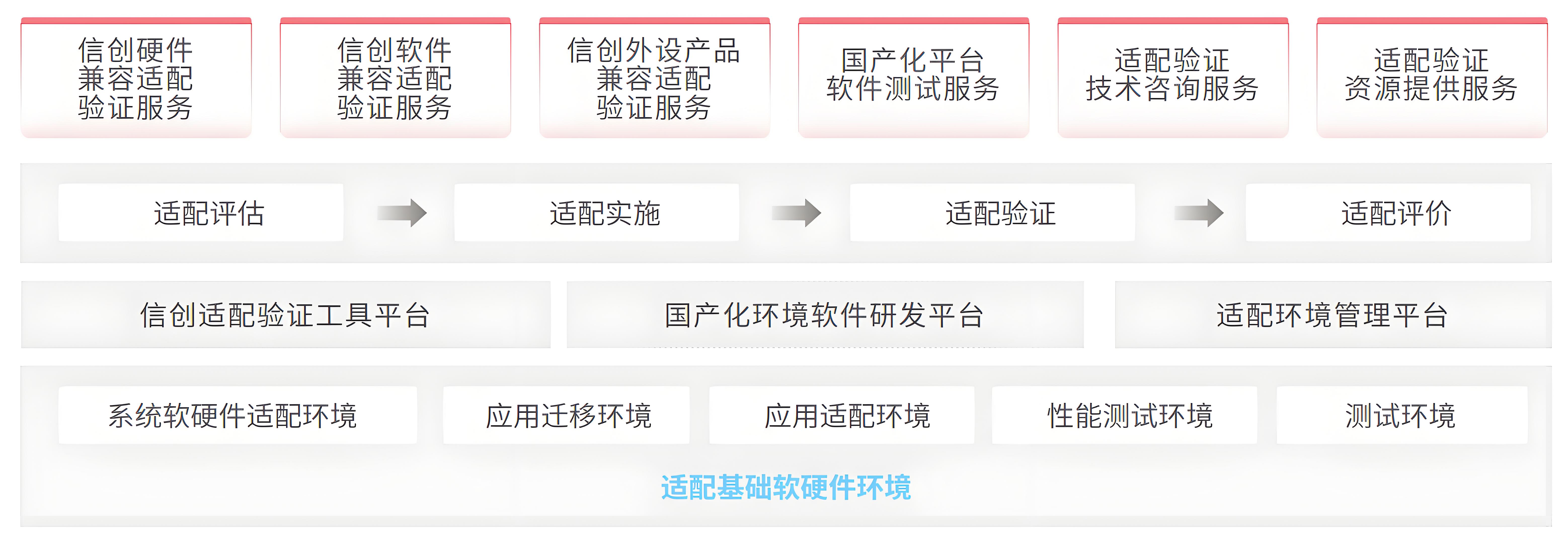 信息公司信创适配验证服务,基于信创适配验证实验室,建设基于多种技术路线的全栈适配测试平台和应用迁移平台。提供从自主创新系统软硬件产品的适配到应用软件的迁移、适配、研发、测试的全流程服务。包括硬件兼容适配验证服务、软件适配兼容验证服务、外设产品适配兼容验证服务、国产化平台软件测评服务、适配验证技术咨询服务、适配验证资源提供服务。